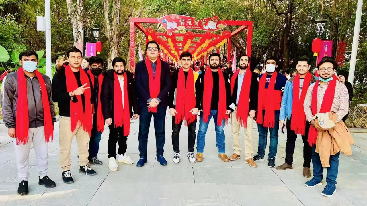 Arriving during the final phase of the COVID-19 pandemic, Amir Hamza, a Pakistani Ph.D. candidate at Shenzhen University, said he was immediately struck by “well-managed planning and sophisticated arrangements” for international students by local authorities. For him, this efficiency and warmth was a real-world reflection of the long-standing friendly ties between Pakistan and China that he had long heard aboutAmir Hamza (3rd, L) and other international students pose for a photo during a Chinese cultural celebration at Shenzhen University. Photos courtesy of the interviewee