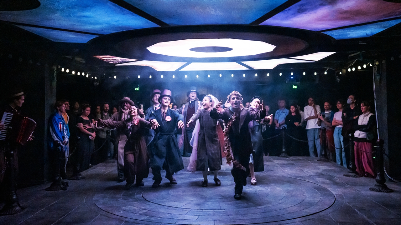 If immersive, participatory theatre appeals to you, The Deal is a must-see. It’s ambitious, provocative at times, and surprisingly humane in its insistence that we, as an audience, have a stake in the narrative. There are so many things happening at once and no two people will have the same experience. My favorite part was being pulled away by the character that played the evil during the bar scene. He is easily recognized by his red coat. While most of the audience was watching the song and dance routine, about 8-10 of us were above the action on the second floor balcony watching the Devil pour potions.
