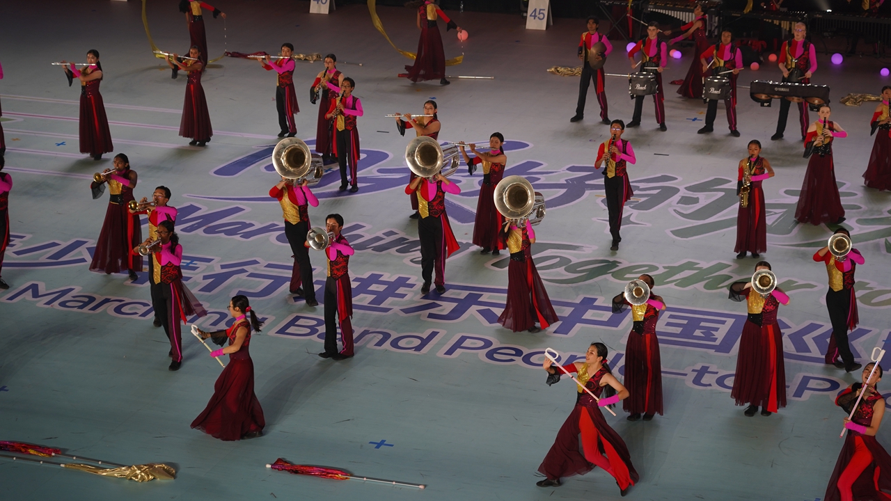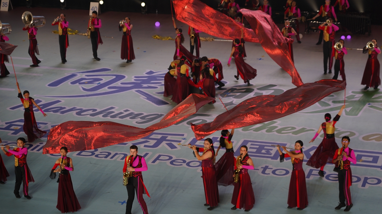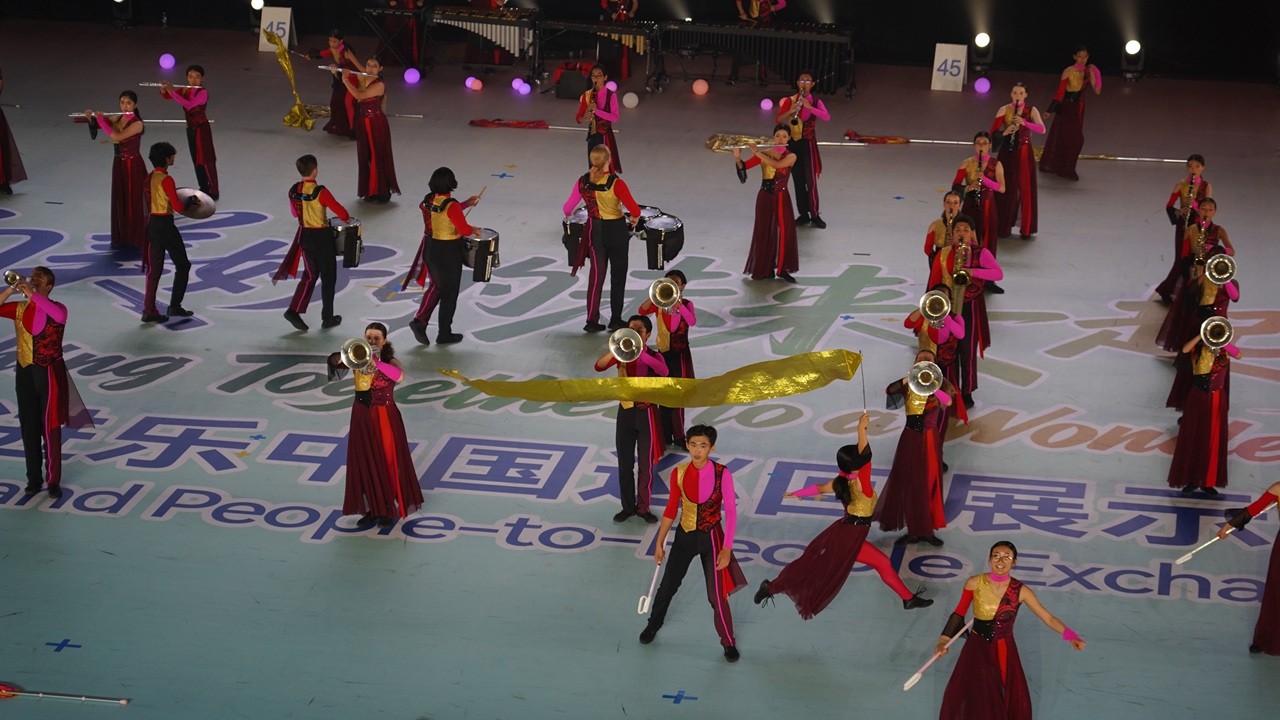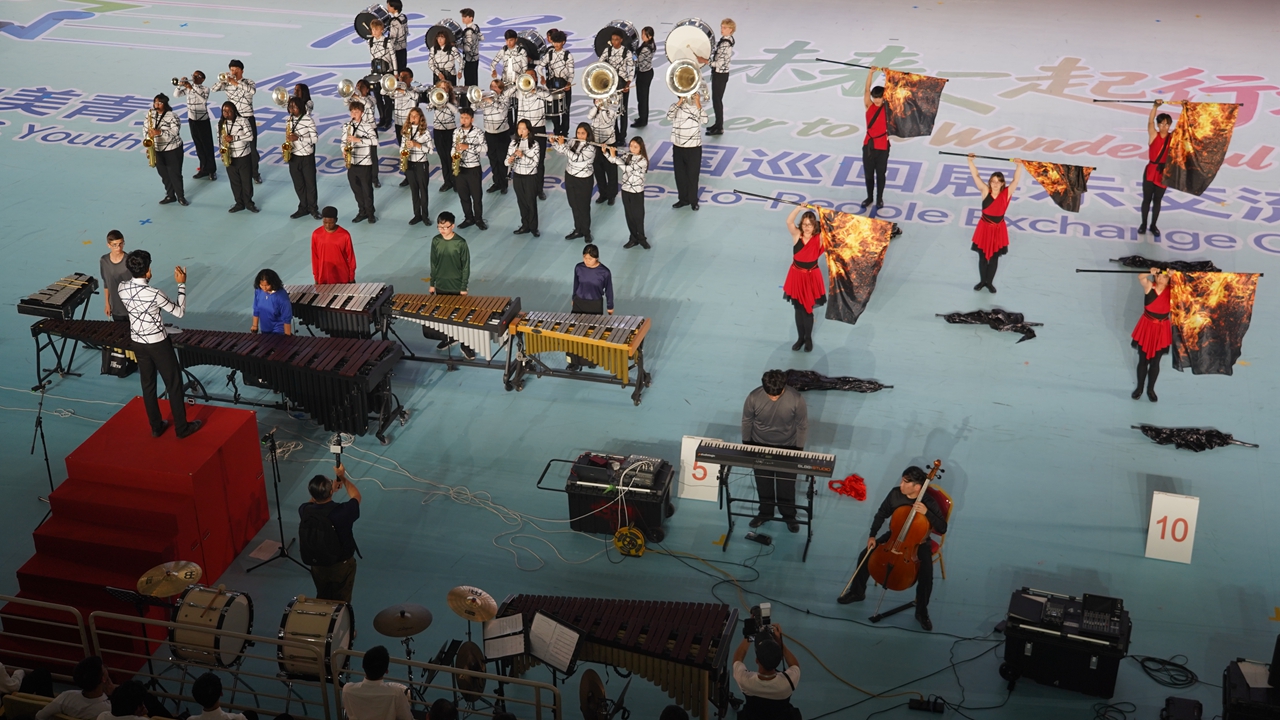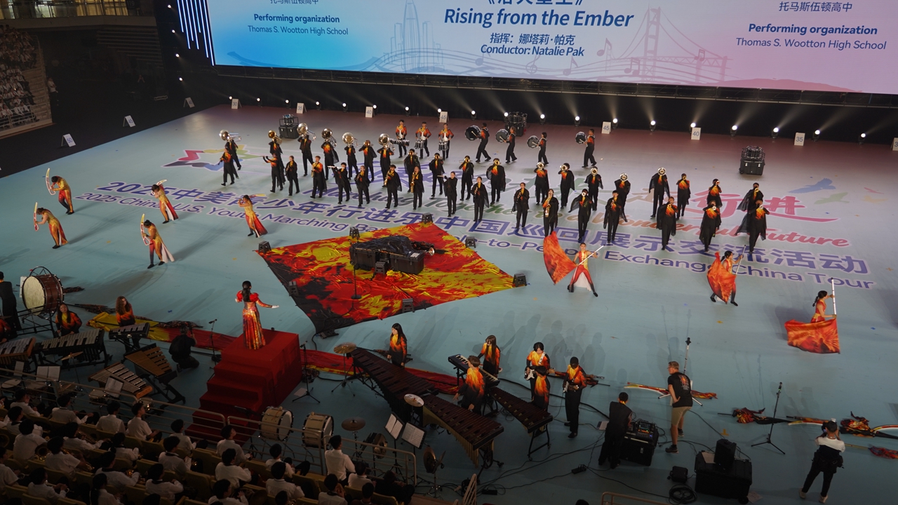 In a vibrant display of cross-cultural harmony, hundreds of teenagers from the U.S. and China came together for a large-scale marching band exchange gala at the University Town of Shenzhen Sports Center yesterday.
