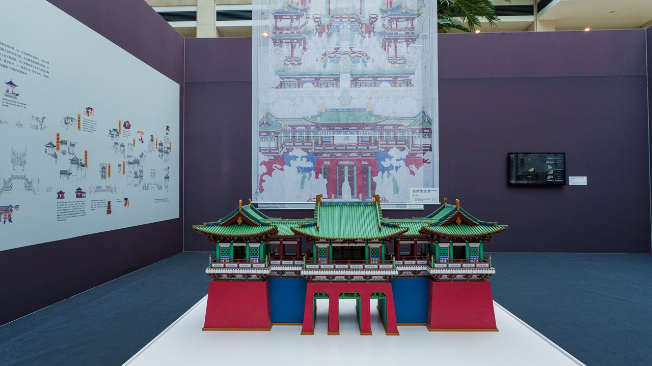 Reconstructed model of a gate tower depicted in the Kaihua Temple mural.