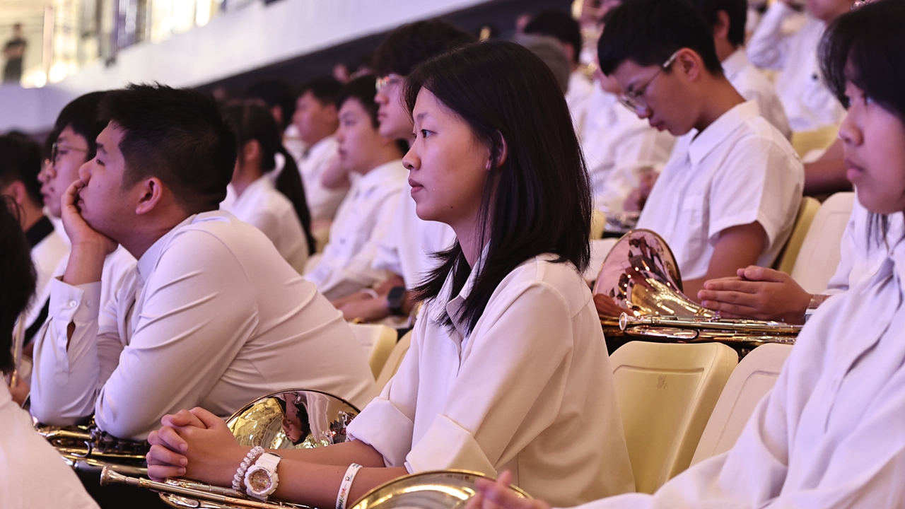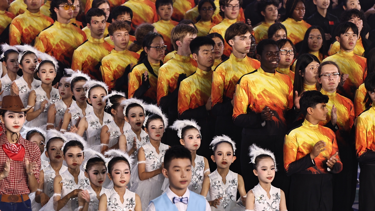 In a vibrant display of cross-cultural harmony, hundreds of teenagers from the U.S. and China came together for a large-scale marching band exchange gala at the University Town of Shenzhen Sports Center yesterday.