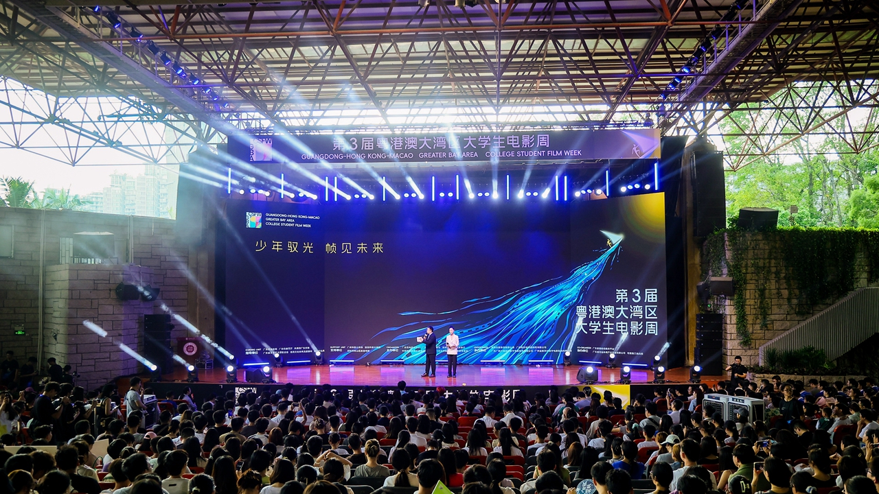 The 3rd Guangdong-Hong Kong-Macao Greater Bay Area College Student Film Week was launched yesterday at Shenzhen University, marking a key cultural event timed that coincides with the 120th anniversary of Chinese cinema and aims to foster the next generation of filmmakers.Teachers and students attend the opening ceremony of the 3rd Guangdong-Hong Kong-Macao Greater Bay Area College Student Film Week at Shenzhen University yesterday. Photos courtesy of event organizer except otherwise stated