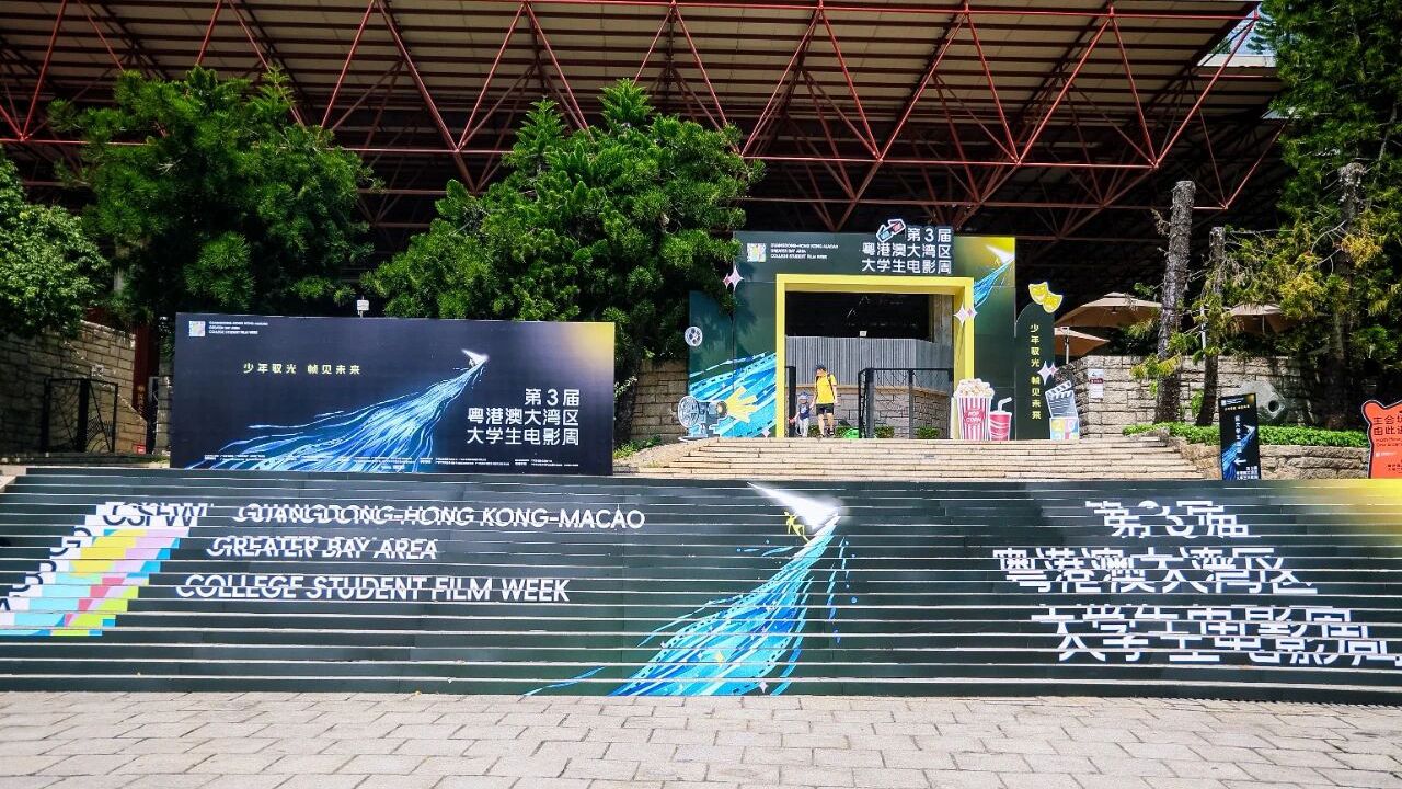 The entrance to a stadium in Shenzhen University is decorated for the opening of the third Guangdong-Hong Kong-Macao Greater Bay Area College Student Film Week.