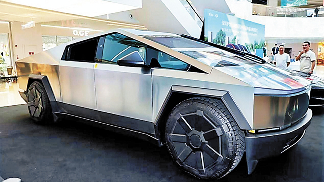 A Tesla Cybertruck on display at the launch ceremony of the first Tesla V4 supercharging station in Shenzhen Teemall in Luohu District on Saturday. Shenzhen Evening News