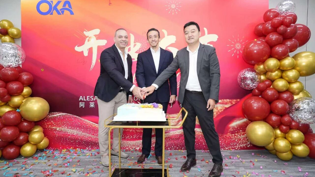 (From L) Mohammed Hassan Hashish, COO of of Alesayi Better Life, Rayan Saeed Omar Alesayi, CEO of Alesayi Better Life, and Kevin Wang, executive director of Alesayi Technology (Shenzhen), celebrate the opening of Alesayi Technology (Shenzhen) Co. Ltd. in Longhua on Tuesday. Photos courtesy of Alesayi Technology (Shenzhen) Co.