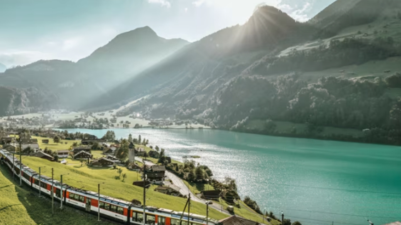A Luzern–Interlaken Express train runs past Lake Lungern in central Switzerland. Photos courtesy of Switzerland Tourism