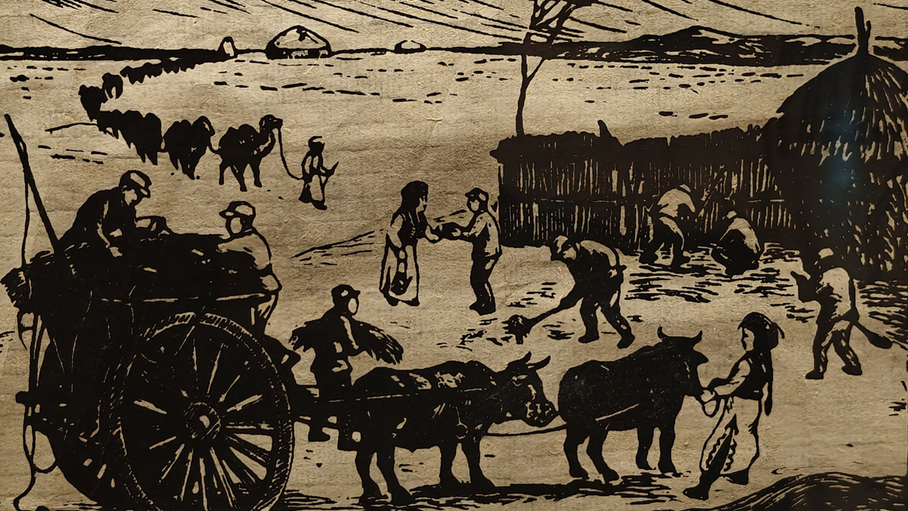 Zhang Wang'swoodcut shows a shared harvest, serving as a promise of ethnic unity.