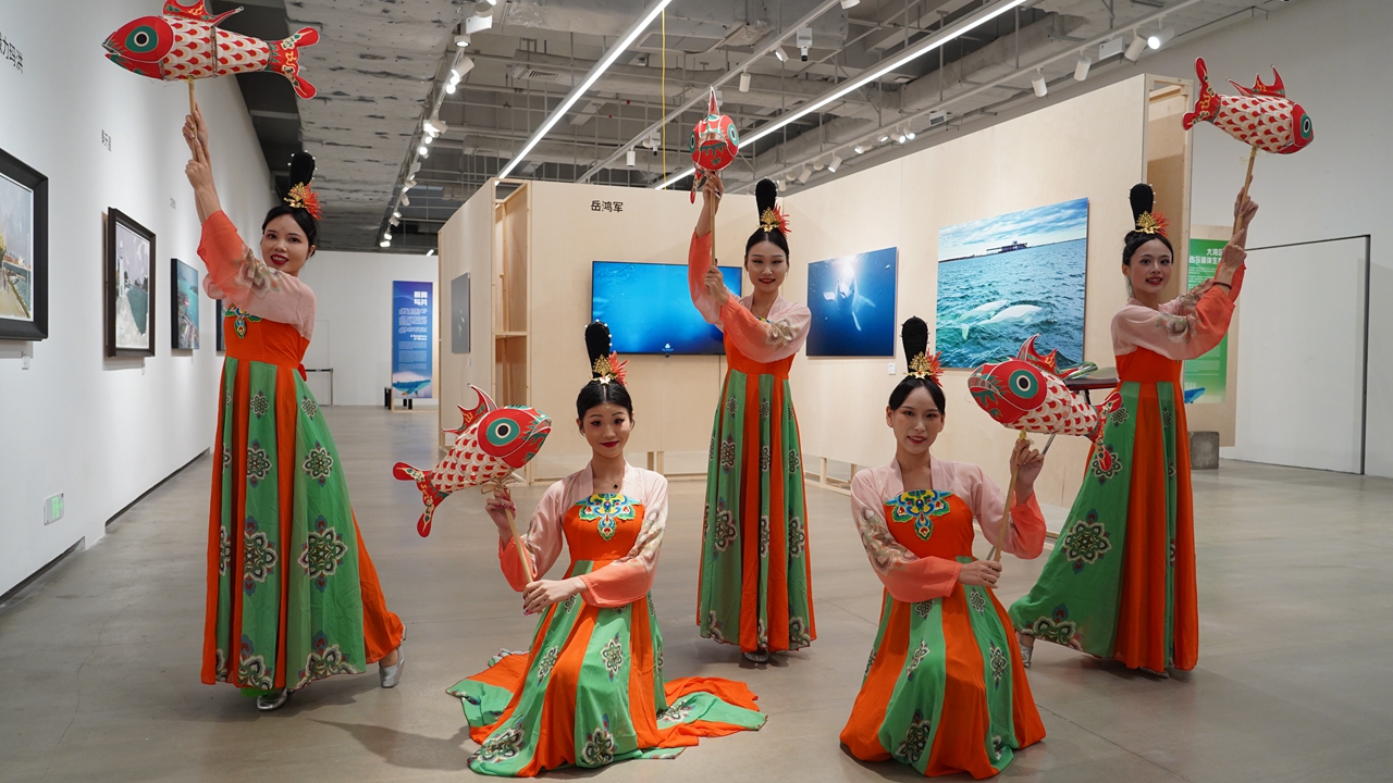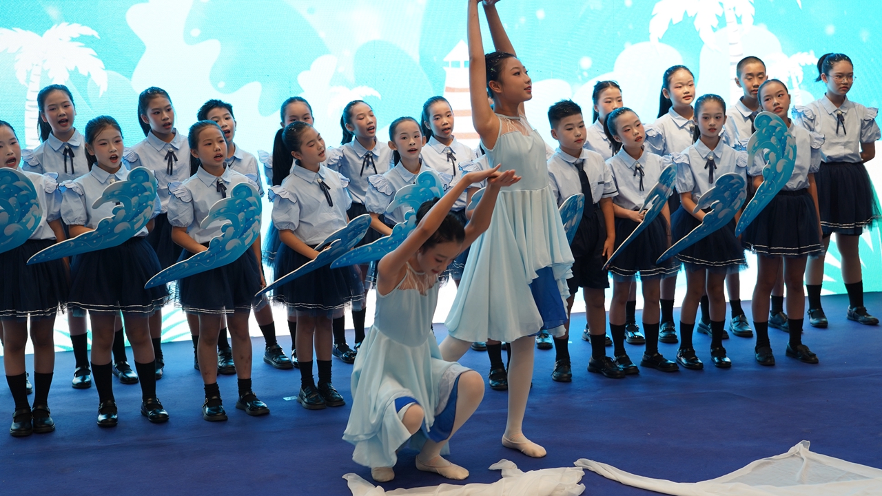 Dancers perform during the “Marine Art Prelude” at OCAT Shenzhen in Nanshan District yesterday, marking the official launch of Shenzhen International Marine Week 2025.