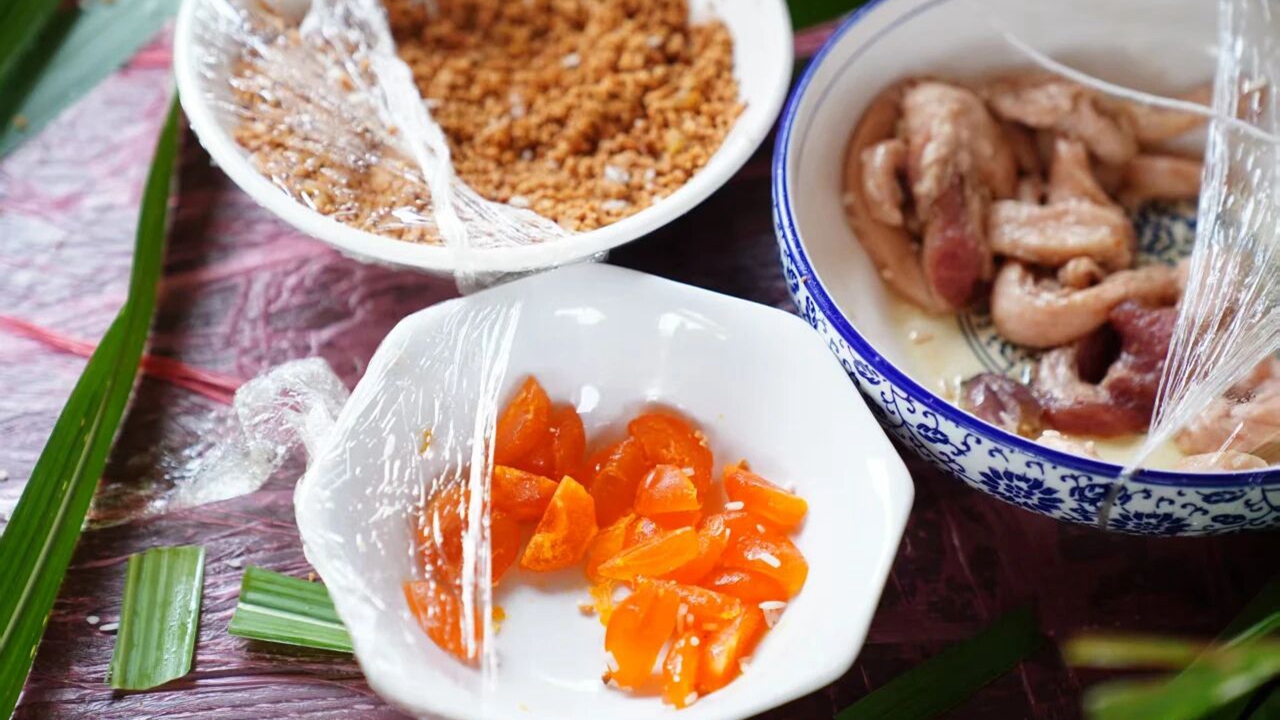 Key ingredients for sea urchin zongzi are prepared for participants to use during the workshop.