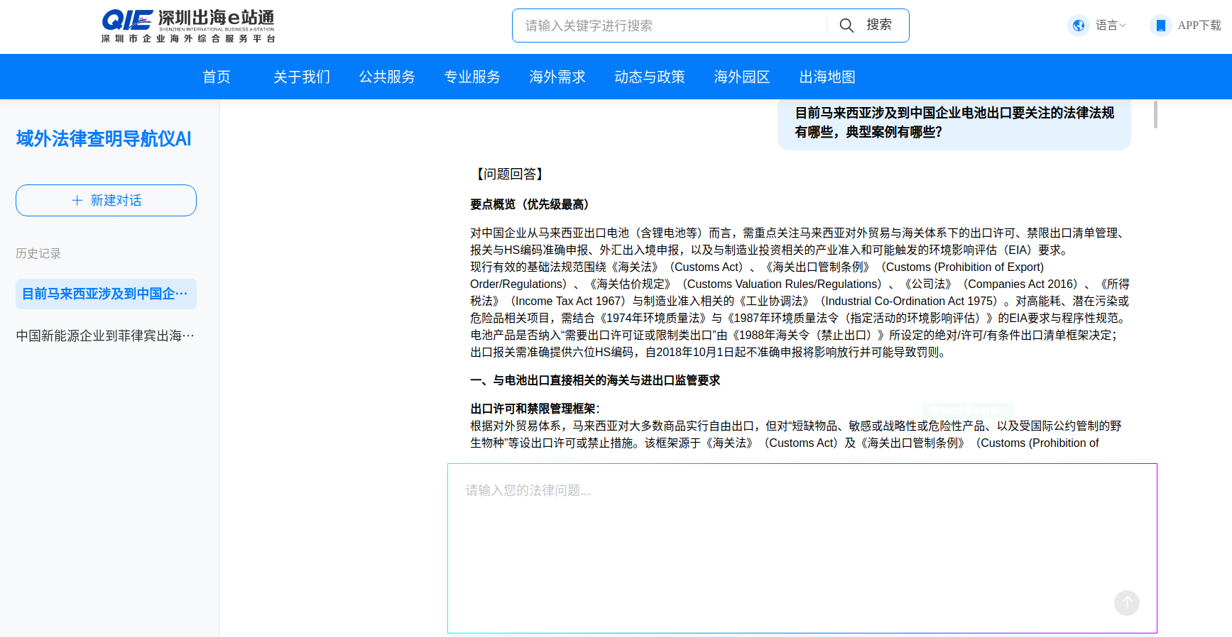 The AI navigator for overseas legal queries is available on the homepage of the Shenzhen International Business e-Station (www.qhqie.com).