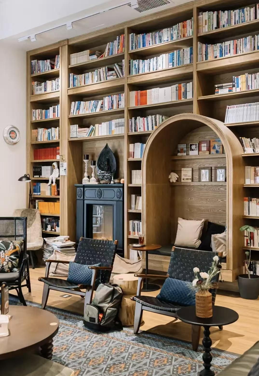 Instead of rigid shelves and tables, you’ll find sofas, coffee tables, and even a TV. This is a place for curling up with a book, listening to music, or simply daydreaming. Light meals, coffee, and baked goods are available, making it easy to spend a whole afternoon in comfort.