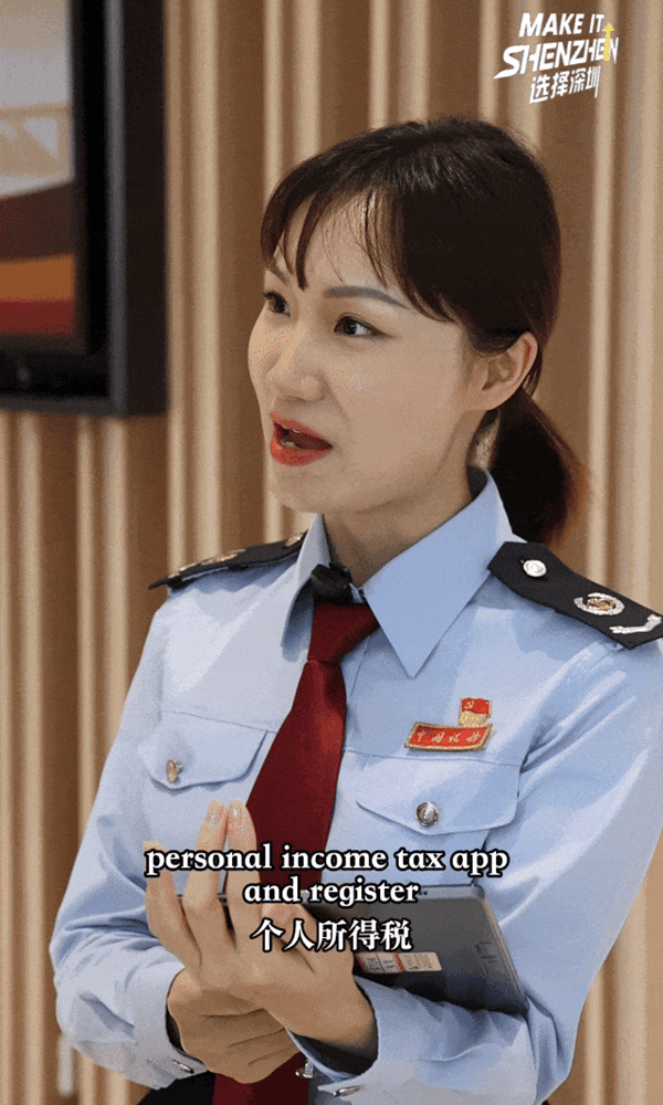 但令她惊喜的是,一位精通英语的深圳市税务局工作人员及时出现:“不用慌,在深圳办税so easy!走,我带你去办税服务厅搞定它!”