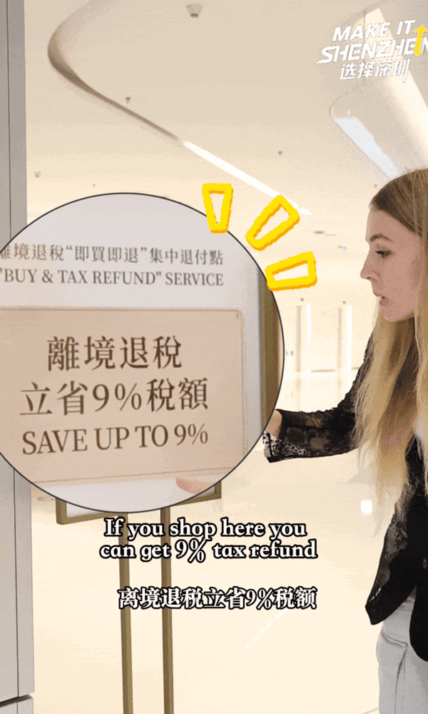 "Wow! I can get a departure tax refund when I shop here, with a 9% discount!" Cassie discovered while browsing MixC Shenzhen Bay.