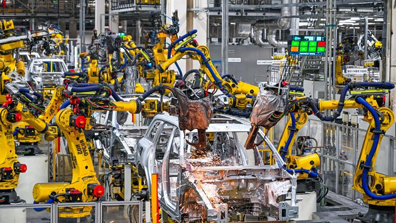 A drone photo shows the automated production at the Seres Super Factory in Liangjiang New Area, southwest China's Chongqing, on September 19, 2025. Xinhua