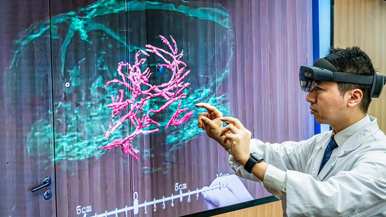 A researcher of Wuhan Union Hospital demonstrates brain-computer interface technology using mixed reality technology March 26, 2025. Xinhua