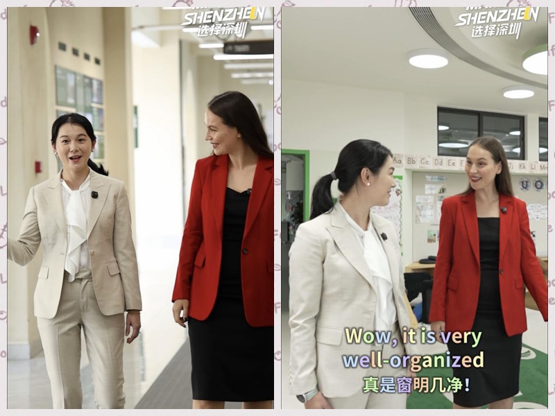 Chen Yajun, a civil servant from Shenzhen Municipal Education Bureau, greeted Elen warmly and led the campus tour. She introduced, “As an open, globally connected city, Shenzhen is committed to creating a welcoming environment for international talents and their families.”