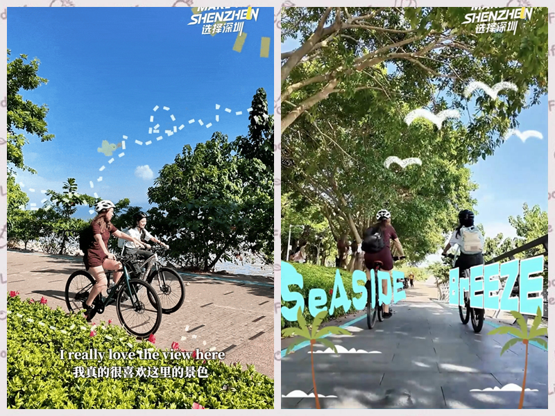 Marina, an international visitor, began her day with a bike ride through Shenzhen Bay Park alongside Sun Yingxin, a staff member from the Shenzhen Municipal Urban Management and Law Enforcement Bureau.