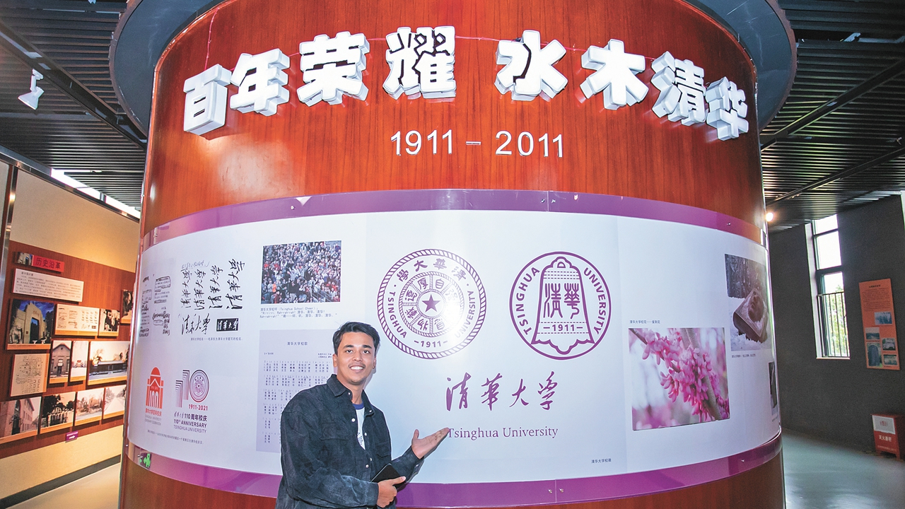 Vivek Yadav poses for a photo during his visit to the Tang Guoan Memorial Hall in Zhuhai in October 2025. Tang was the first president of Tsinghua University.