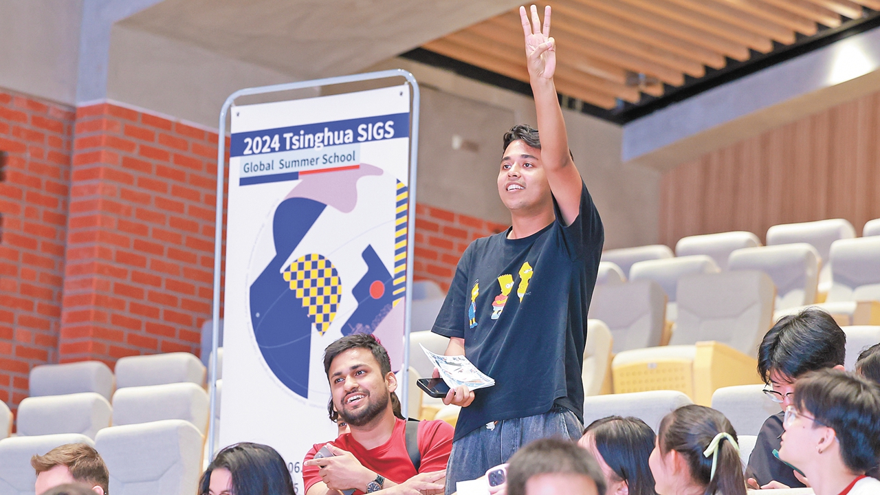Vivek Yadav actively answers a question while attending the Tsinghua SIGS Global Summer School in 2024.
