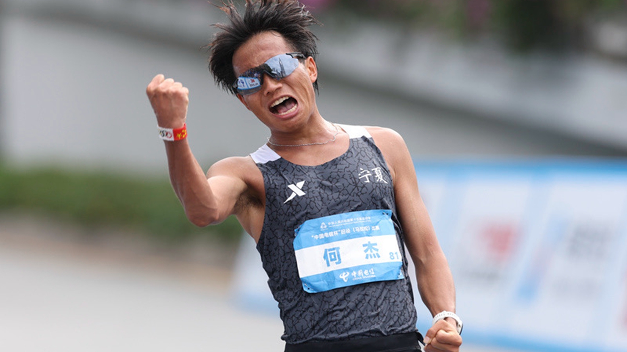 He Jie of Ningxia, the national record holder, won the men's race with a time of 2:12:07, while Zhang Deshun of Yunnan claimed the women's gold medal in 2:30:20 at the 15th National Games.