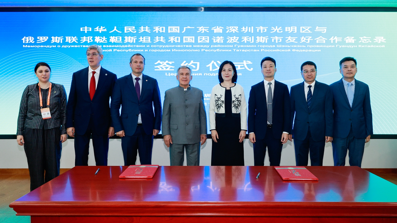 Guangming District strengthened its international partnerships Nov. 14 by signing a Memorandum of Friendly Cooperation with Innopolis, an innovation-driven city in the Republic of Tatarstan, Russian Federation.