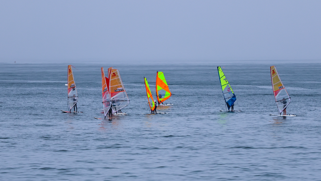 Sailing teams race in an international regatta in Dapeng Bay. Liu Xudong