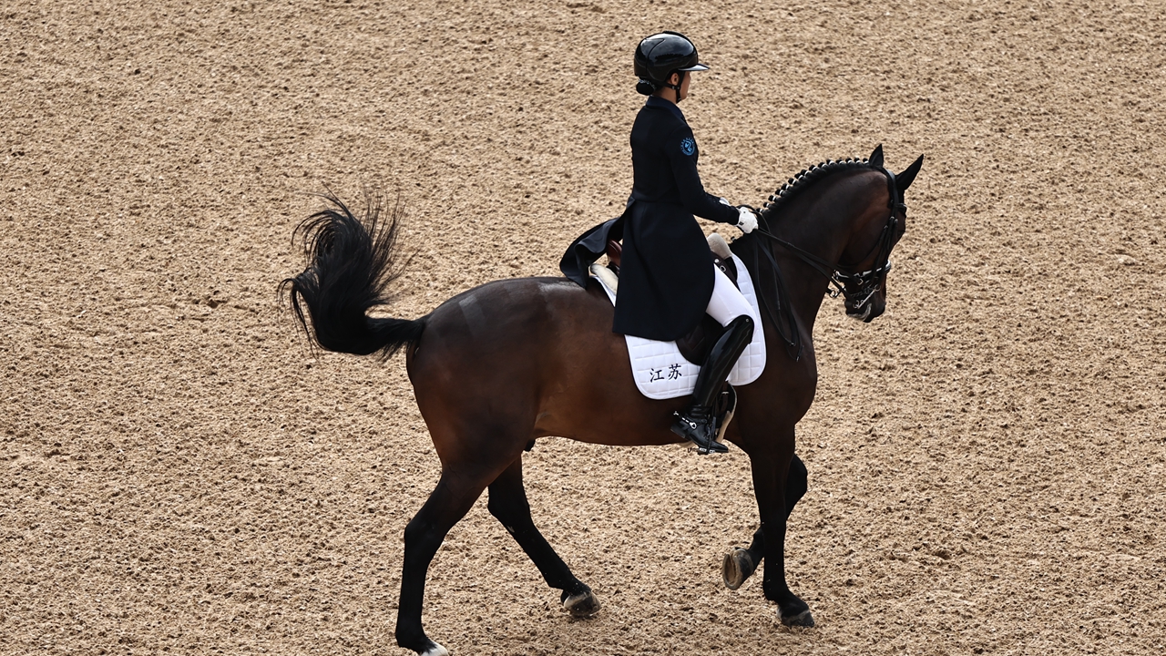 A rider competes in the equestrian team dressage event of the 15th National Games at the Shenzhen Guangming International Equestrian Center in Shenzhen on Nov. 10. Liu Xudong