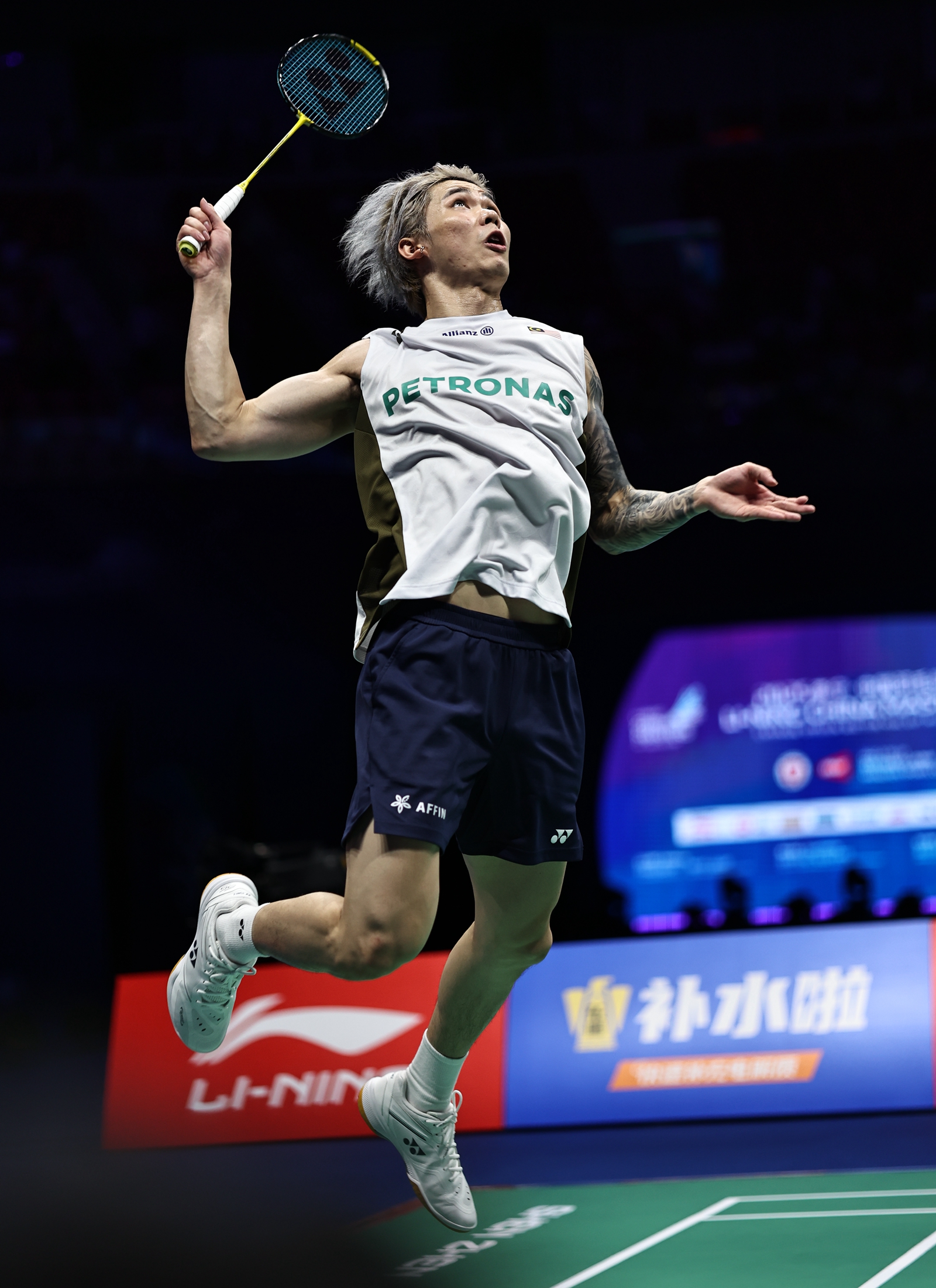 A badminton player competes during a game at the Li-Ning China Masters in Shenzhen on Sept. 16. Liu Xudong