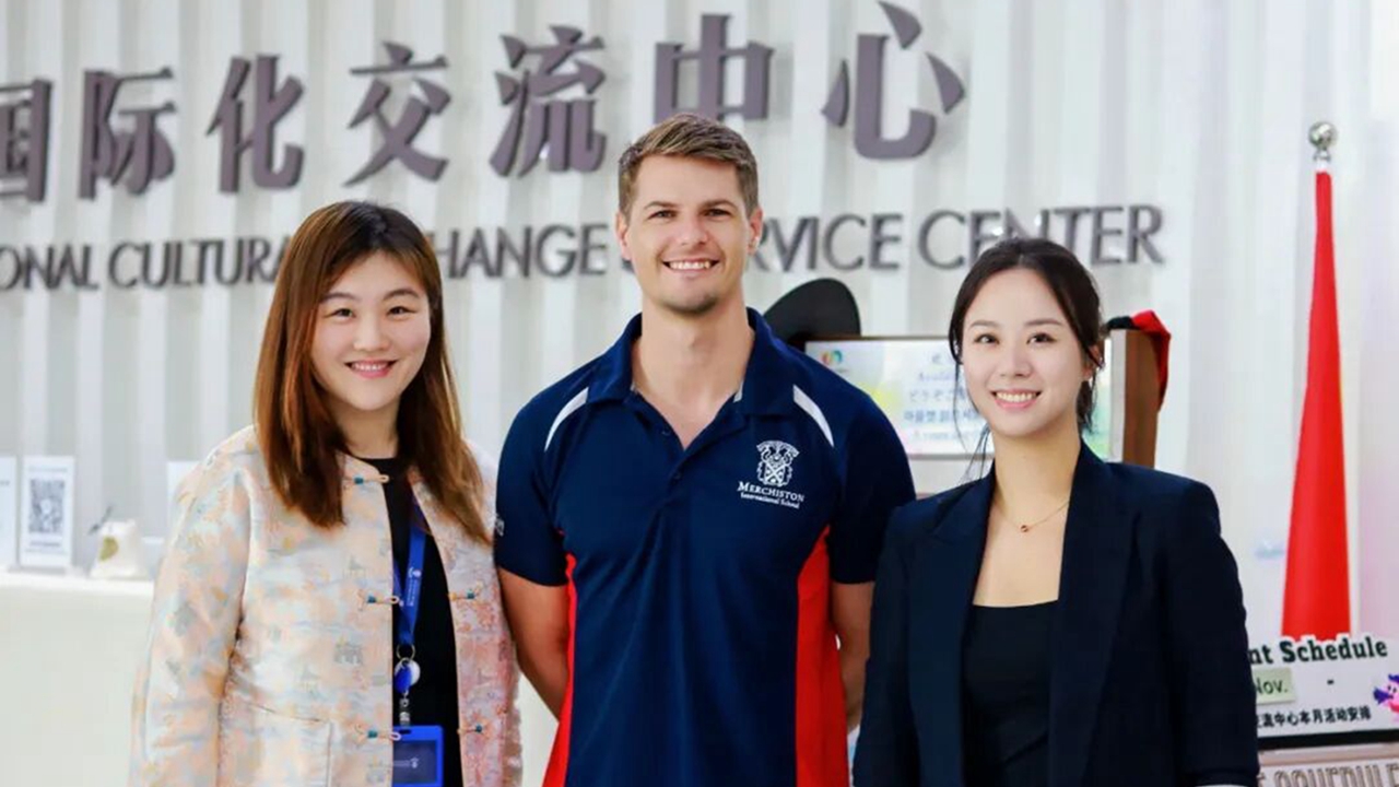 (From L) Liu Siyu, director of Academic Affairs of Merchiston International School (Qianhai), Mike Alberts, sports director of Merchiston International School (Longhua), and Zhong Ruya, director of the Nanshan International Cultural Exchange & Service Center pose for a photo during the event.