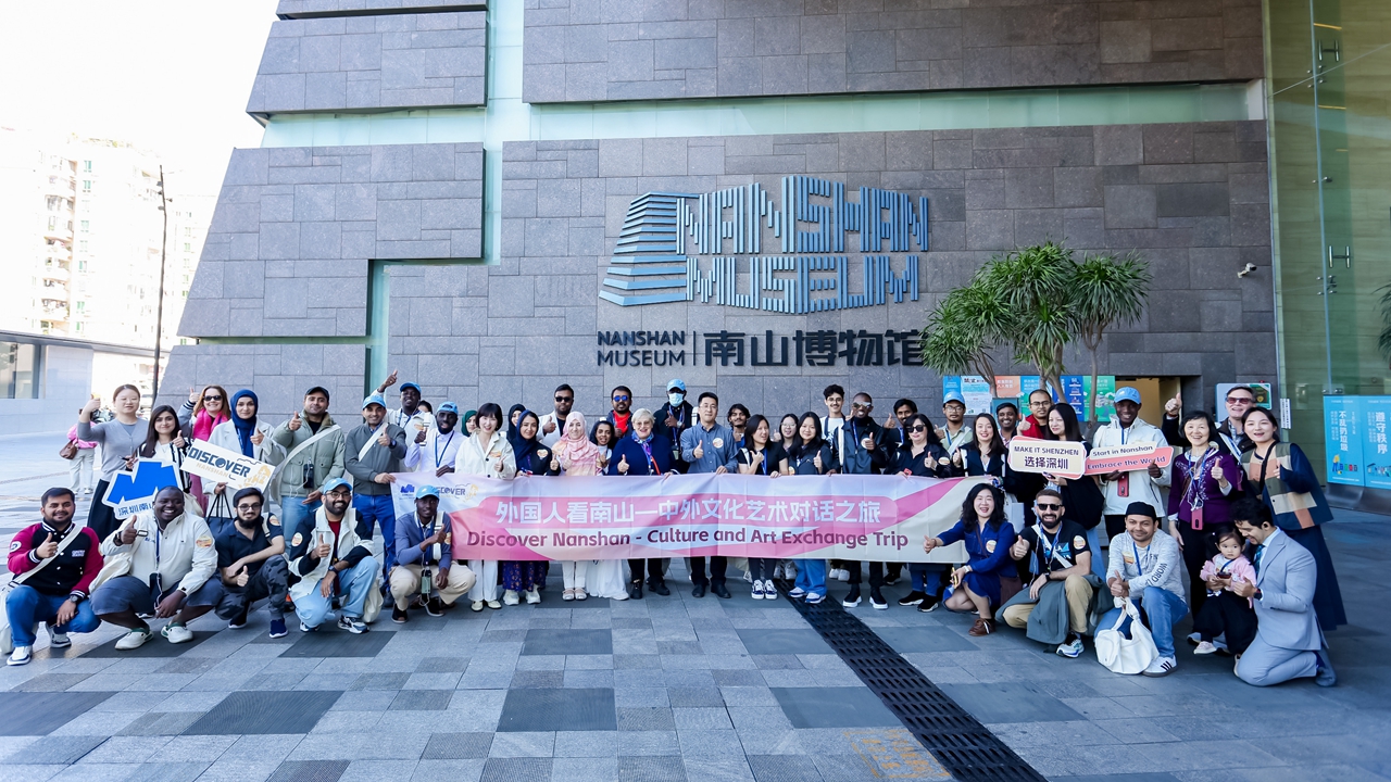 A cross-cultural exchange activity, Sino-Foreign Cultural and Artistic Dialogue Journey, was held Nov. 22, bringing together over 60 foreigners to explore Nanshan and experience the charm of the open and inclusive international urban district in Shenzhen.