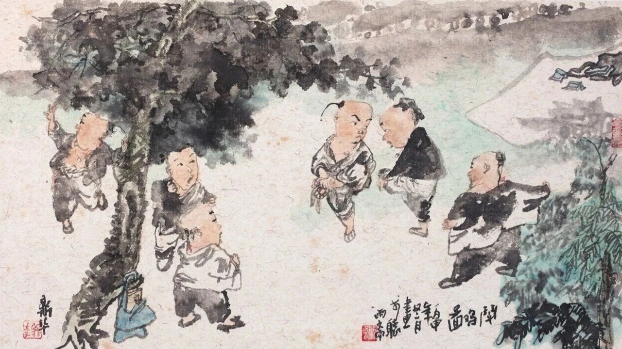 The curatorial statement praises the artist’s choice to focus on the playful spirit of children. In paintings such as “Rooster Fighting,” “Playing with Paper Boats,” and “Making Pinwheels,” Tang appears to join in the children’s games rather than merely observe them.