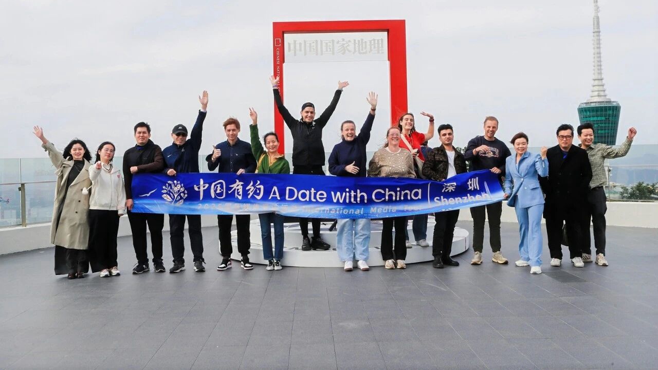 Participants of the "2025 A Date with China" media program pose for a photo at the Wutong Pavilion in Luohu District on Thursday. Photos courtesy of event organizer