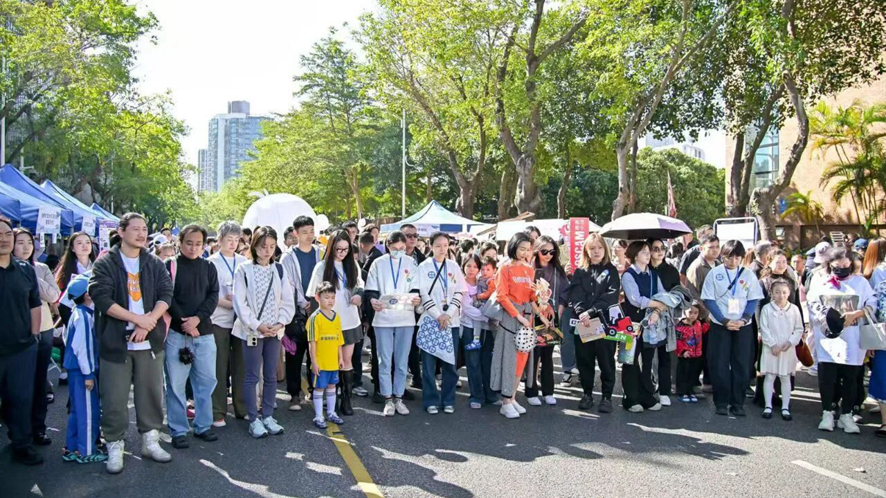 Organizers also led the crowd in a minute of silence for the victims of the recent Tai Po fire in Hong Kong. Guidance on how to make donations to the Tai Po Hongfu Court Relief Fund was also provided, ensuring that contributions are channeled through official channels.