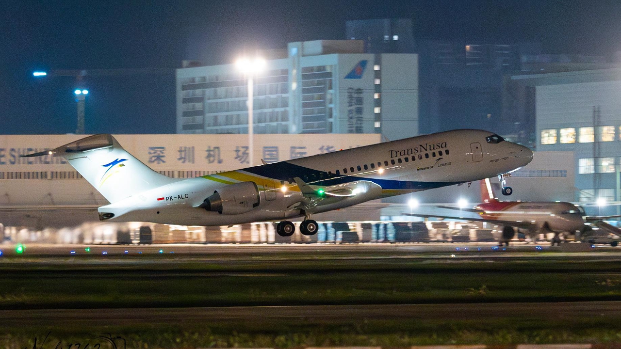 A C919 passenger aircraft is seen at Shenzhen Bao’an International Airport as the new international route to Manado, Indonesia, officially opened Oct. 3. Shenzhen Special Zone Daily