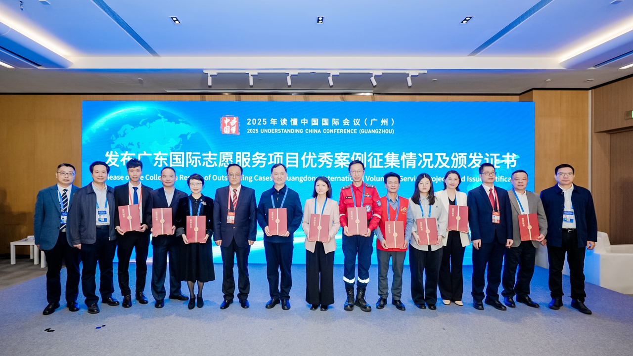Award recipients of Guangdong’s Top 10 International Volunteer Service Cases are honored at the 2025 Understanding China Conference in Guangzhou on Monday.