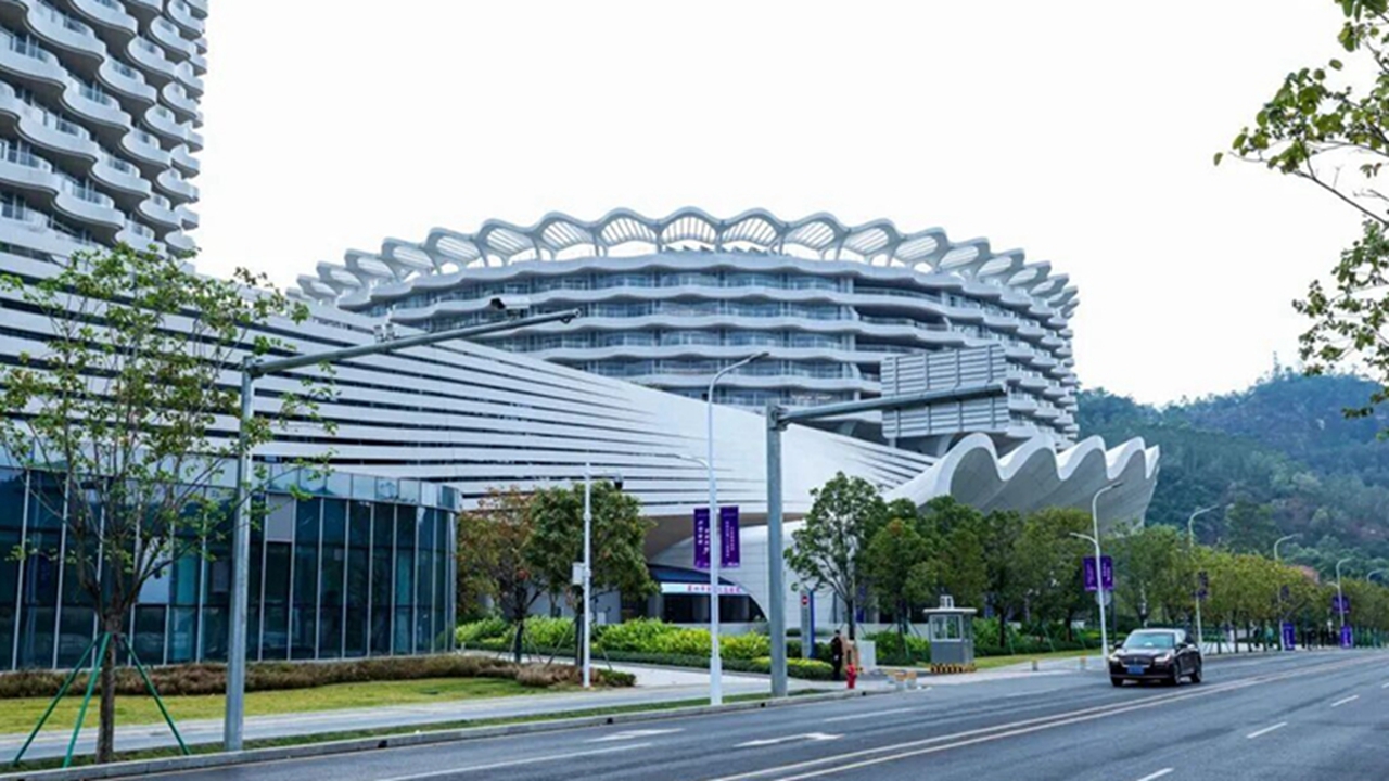 The complex comprises two main towers inspired by traditional Hakka enclosed dwellings, reflecting Dapeng New Area’s rich Hakka cultural heritage.