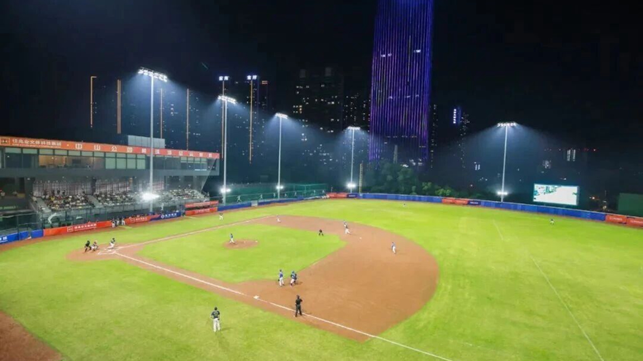 Players compete in a baseball game at Zhongshan Park Baseball Field in Shenzhen. Photo from WeChat account "曼吉亚斯MEGIAS"