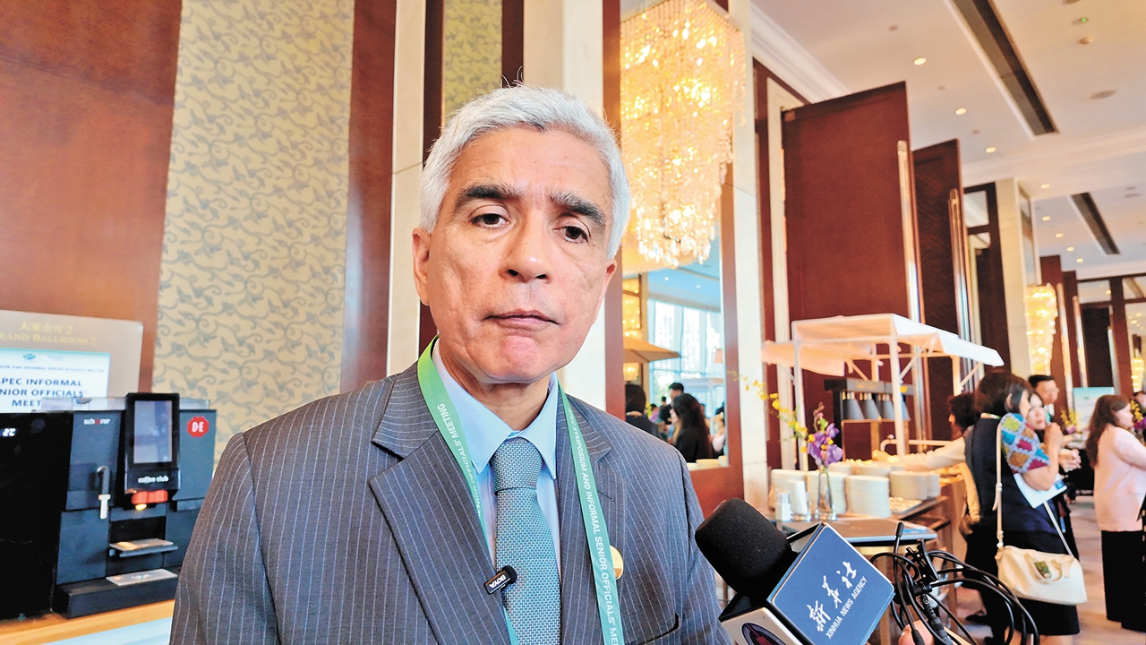 Victor Muñoz, a senior official from Peru, gives an interview to the press while attending the APEC Symposium and Informal Senior Officials’ Meeting in Shenzhen on Thursday. Chen Siqi