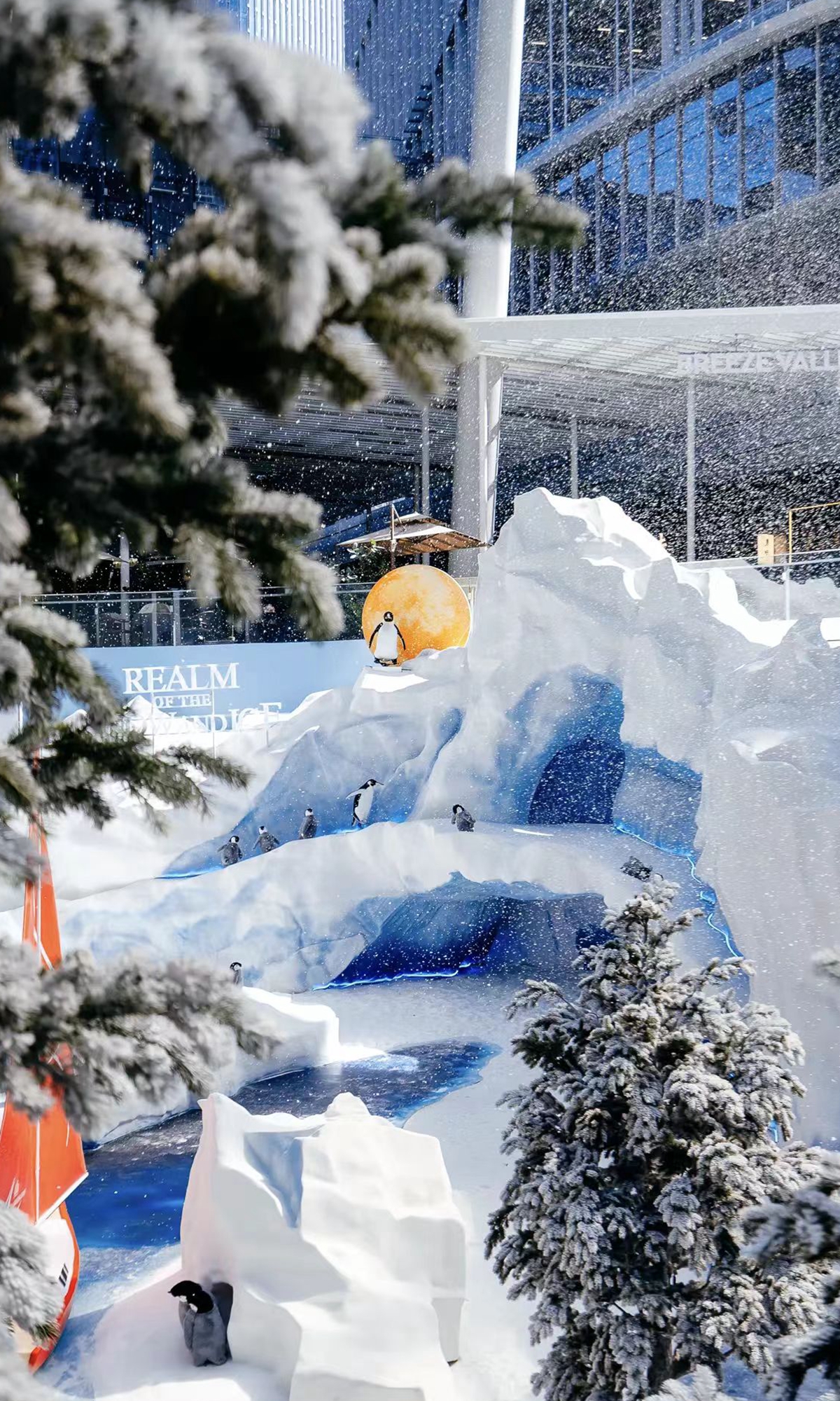 Escape Shenzhen’s subtropical climate at MixC Qianhai’s “Realm of Ice and Snow II — Polar Rendezvous.” Located in the B2 courtyard, this indoor glacier wonderland features reindeer, cabins, and a tall Christmas tree, all enveloped in a pristine white theme. Step into a sub-zero fantasy world, with multi-level photo opportunities creating the perfect illusion of a snowy holiday.