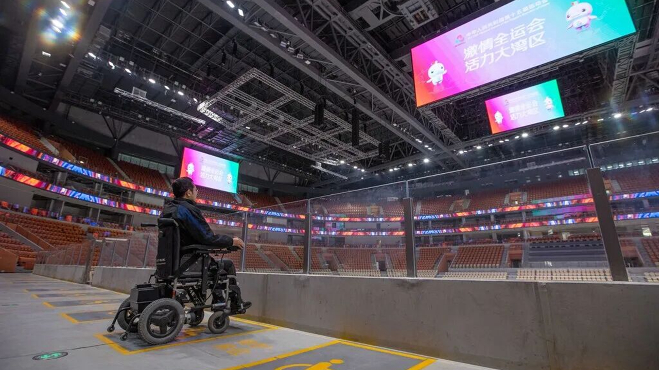 A spectator in a wheelchair enjoys an accessible viewing area at a Games venue in Shenzhen, highlighting the inclusive design and smart infrastructure showcased during China’s 12th National Games for Persons with Disabilities and the 9th National Special Olympic Games. Technology played a central role in creating barrier-free experiences for all.