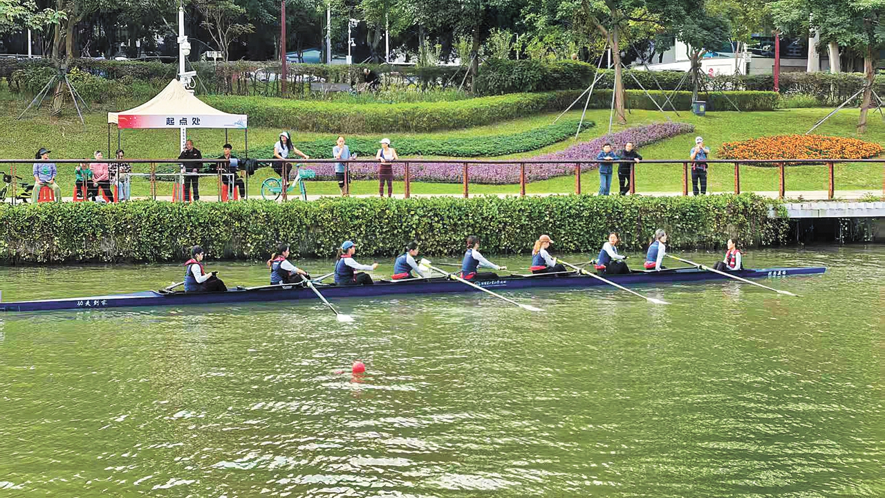 The women’s rowing team from Harbin Institute of Technology (Shenzhen) competes on the Dasha River in November during the Fourth Shenzhen X9 Alliance of Universities and Institutes Rowing League Around X-Lake Sciensity. Photos courtesy of the interviewee except otherwise stated