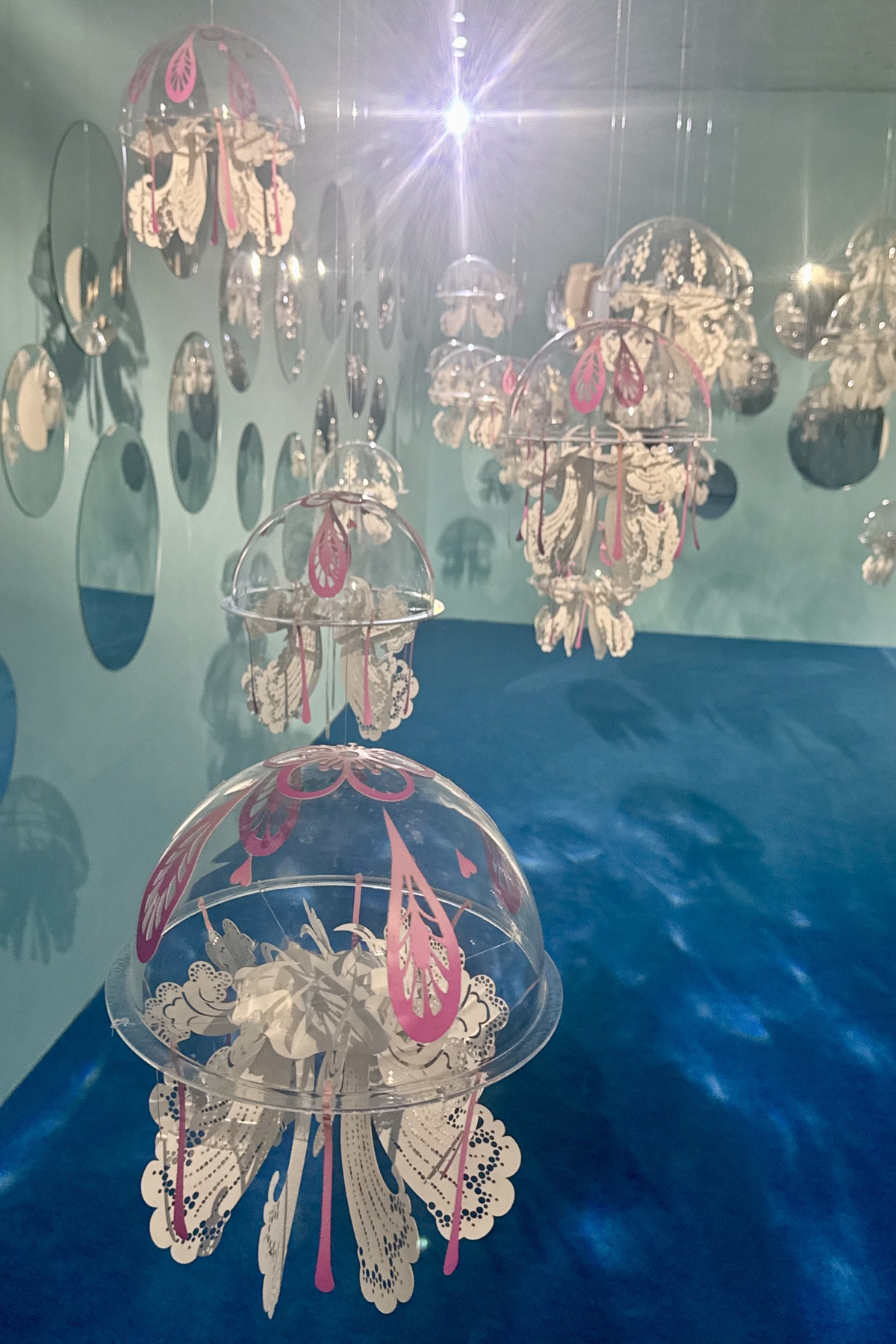 “Luminous Nights: Jellyfish in Paper” is a paper art exhibition by Jackie Wen.