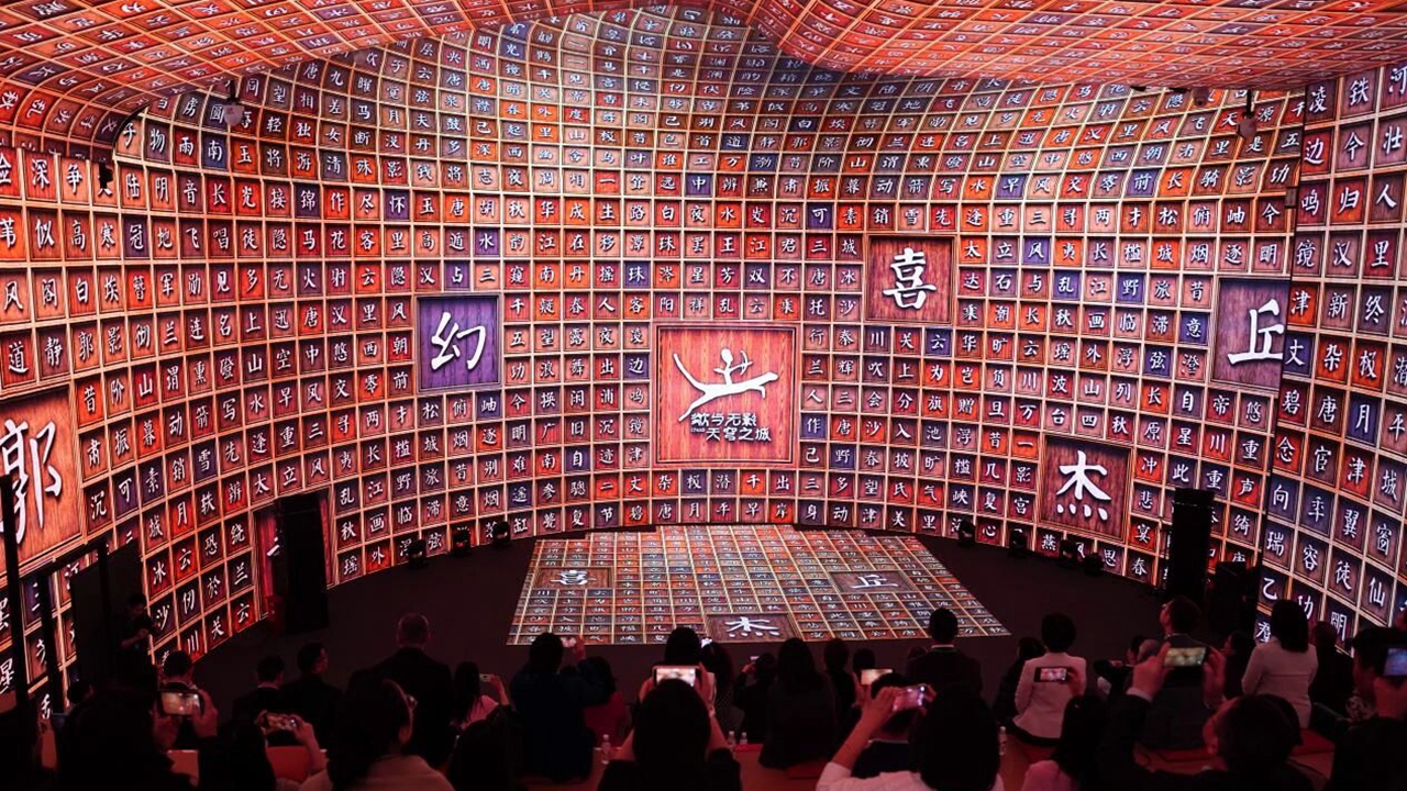 Attendees experiences a 360-degree fully immersive ultra-high-definition LED digital art space developed by Shenzhen-based companies Chua and Wuying Cultural Industry Development Co. Ltd.