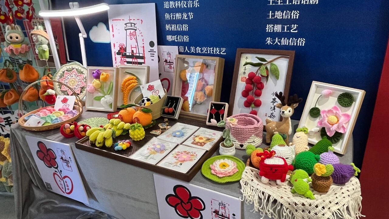A variety of thread-kneaded works are on display at the center.