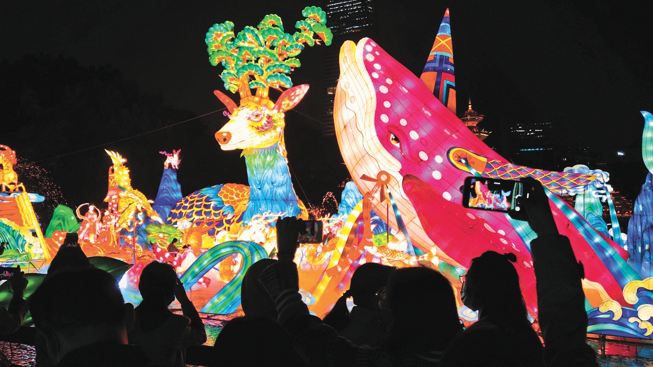 Now through March, over 40 large-scale lantern installations are spread across 530,000 square meters at the Splendid China-Folk Culture Villages theme park in Nanshan District.