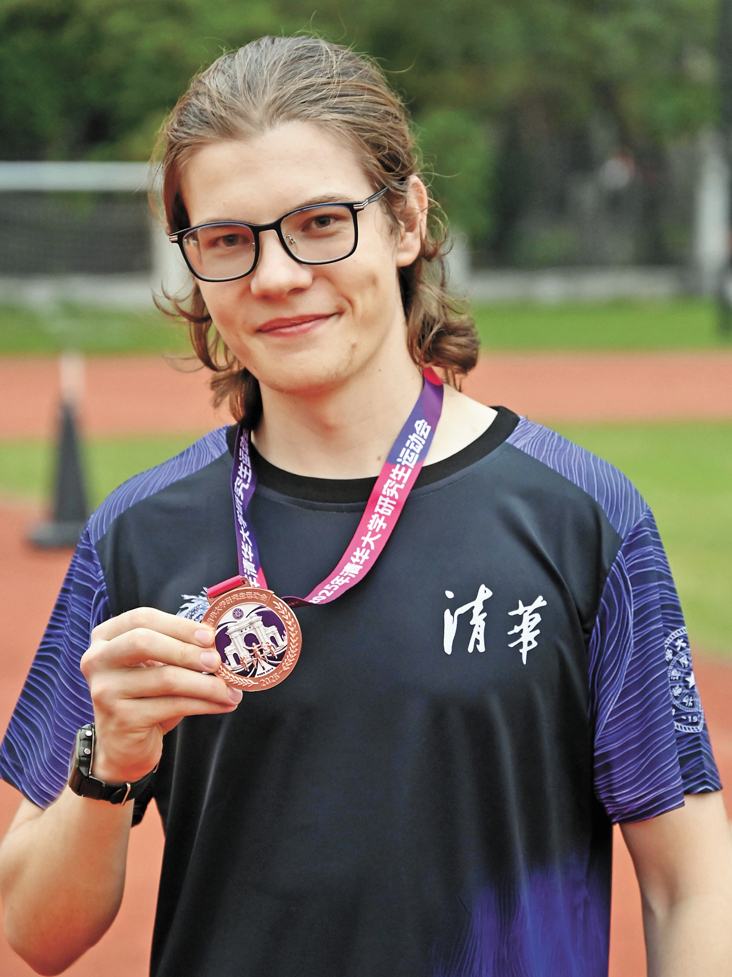 Ziganshin Artur Radikovich poses for a photo after the 2025 New Year’s Cup Dragon Boat Friendship Race at the Tsinghua SIGS campus in Xili on Nov. 21.