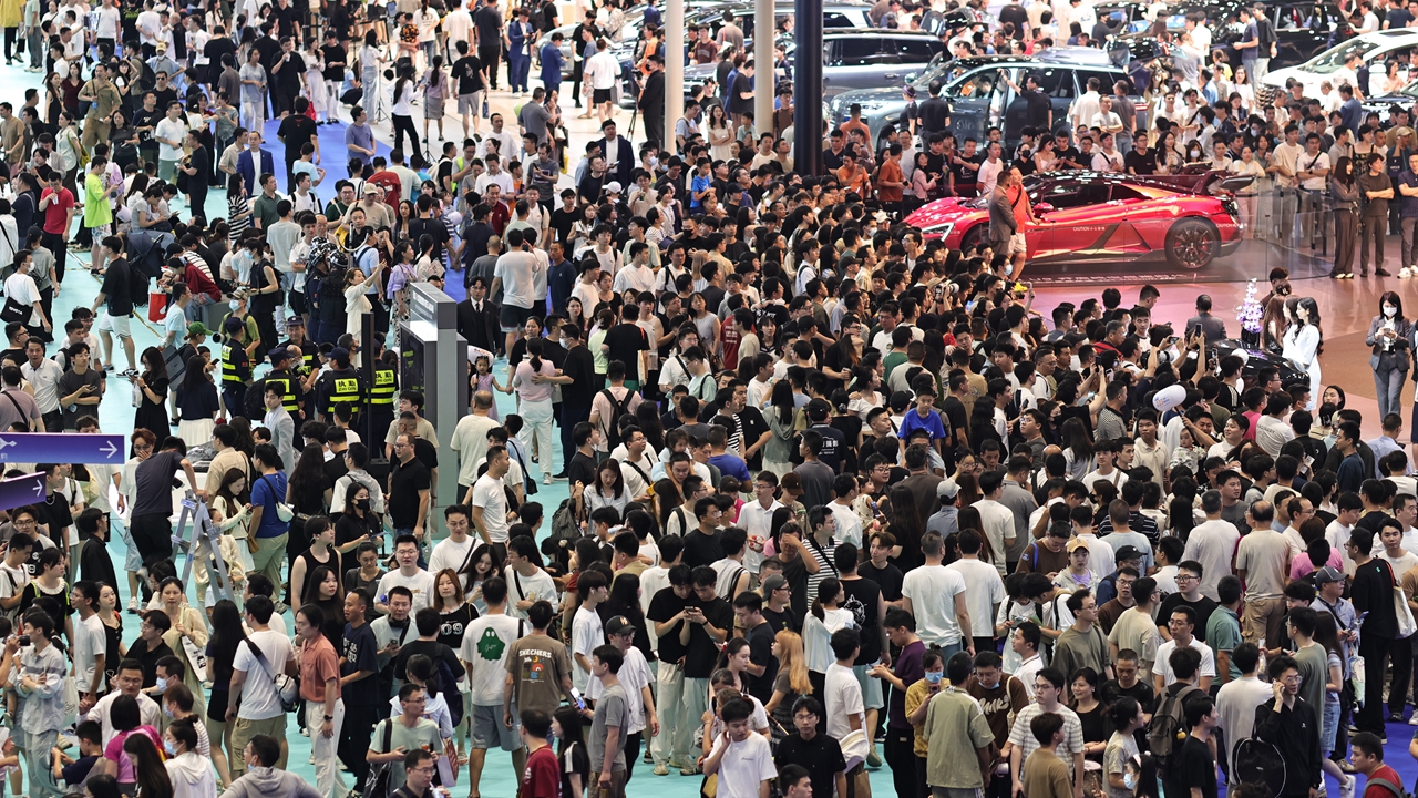 Visitors pack the 2025 Guangdong-Hong Kong-Macao Greater Bay Area Auto Show held at the Shenzhen World Exhibition and Convention Center in Bao'an District. Photos by Liu Xudong