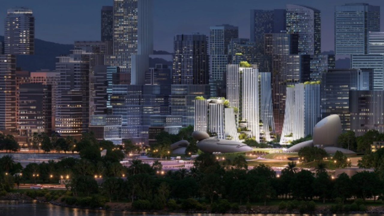A computer-generated image of the pan-video R&D and business headquarters cluster in Nanshan. Photos from WeChat account "创新南山”