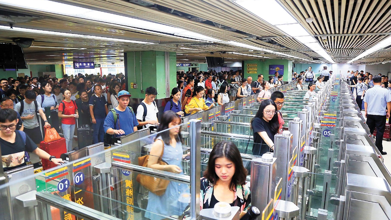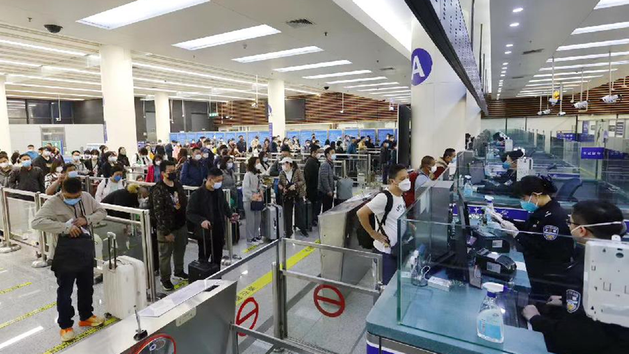 Passengers cross the border at Futian Checkpoint.
