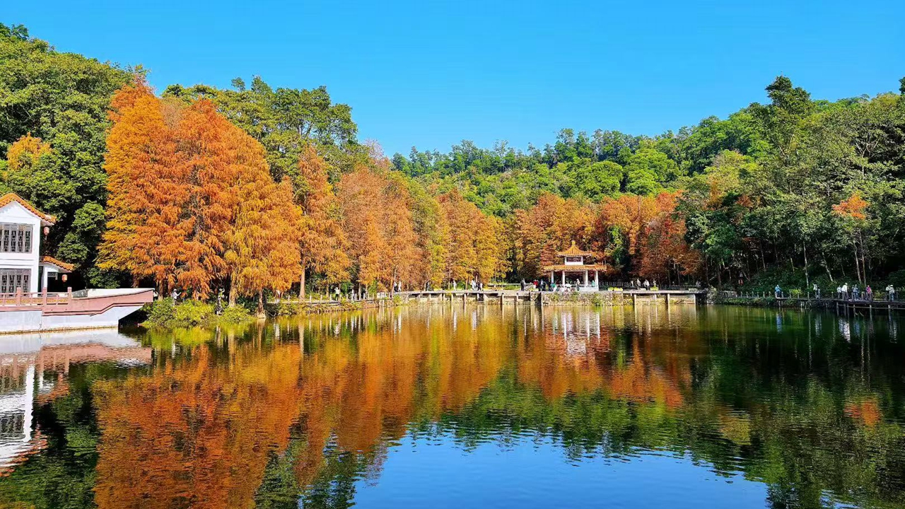 In addition to plum blossoms, bald cypresses paint the landscape with a stunning tapestry of colors. In winter, their foliage glows in vivid shades of orange, yellow, and green, create a harmonious blend of warmth and vitality.